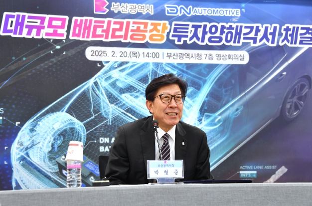 시는 오늘(20일) 오후 2시 시청 영상회의실에서 세계적(글로벌) 차량용 방진부품 및 축전지 제조기업인 ㈜디엔(DN)오토모티브와 '부산 배터리 공장' 신설을 위한 투자 양해각서를 체결한다고 밝혔다.