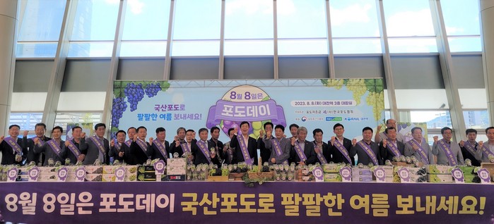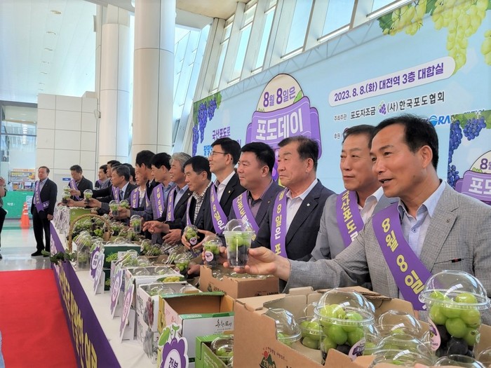 [화학신문 문종민 기자]농협경제지주와 (사)한국포도협회는 '8월 8일 포도데이'를 기념해 대전역에서 '2023 포도데이 나눔행사'를 실시했다.
