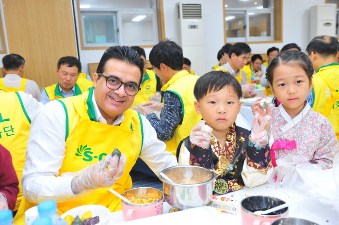 | ▲ S-OIL 오스만 알 감디 CEO는 임직원 100여명과 함께 8일 마포구 성산동 이대성산종합사회복지관에서 ‘사랑의 송편나누기’ 자원봉사를 열고 지역 내 저소득가정 800세대에 송편과 추석 선물을 전달했다. |