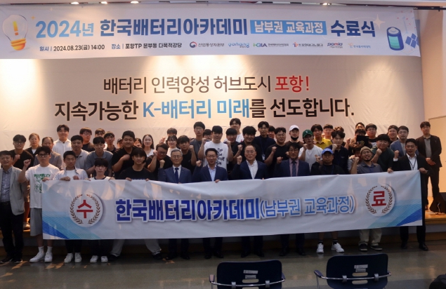 이날 행사에는 포항을 거점으로 둔 한국배터리아카데미 남부권캠퍼스 첫 수료생 44명과 포항시, 포항테크노파크, 포항금속소재산업진흥원, 한국폴리텍대학 포항캠퍼스 등 배터리 아카데미 운영기관 관계자들이 참석해 교육생들의 수료를 축하했다.