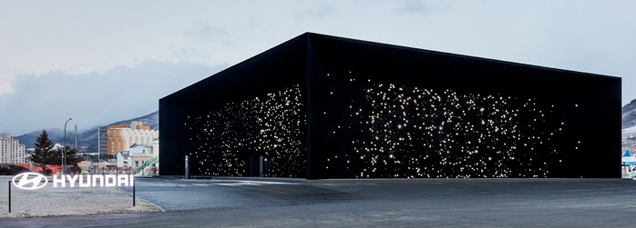 현대차는 올림픽은 모든 이가 평등하게 겨루는 가장 공정한 경쟁의 장인 만큼 현대자동차도 수소전기차가 가져올 평등하고 무한한 미래 사회를 간접적으로 체험할 수 있는 '파빌리온'을 구축했다고 밝혔다. 이어 많은 분들이 세상에서 가장 검은 특수 재료를 최초로 건축물 외관에 적용해 형상화한 완벽한 우주와 마치 씨앗처럼 자유로이 움직이는 물방울이 이루는 장관 등 현대차가 마련한 특별한 경험을 하시길 바란다고 밝혔다.