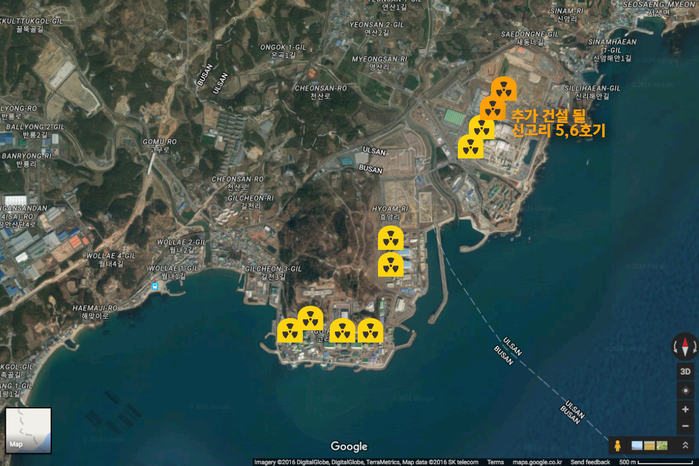 | ▲고리 원전 단지 내에 위치하게 될 10개의 원전. 맨 우측 2기가 건설허가가 난 신고리 5,6호기, 제공 그린피스 |