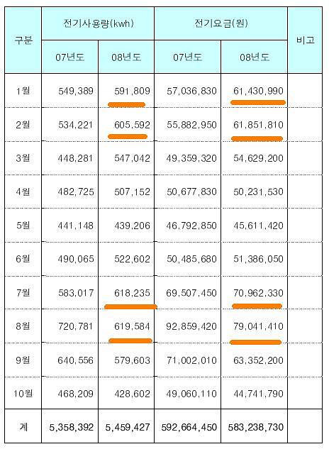 이듬해 2010년 총 사용량은 6,274,255kWh이고 총 사용요금은 6억 8000여 만원 정도 나왔다. 2011년에는 총 사용량 6,178,264kWh이고, 총 사용요금은 6억 9000여 만 원에 달했다. 2012년은 총 사용량 6,051,005kWh로 7억 2000여 만원의 전기사용요금이 지출된 것으로 나타났다.