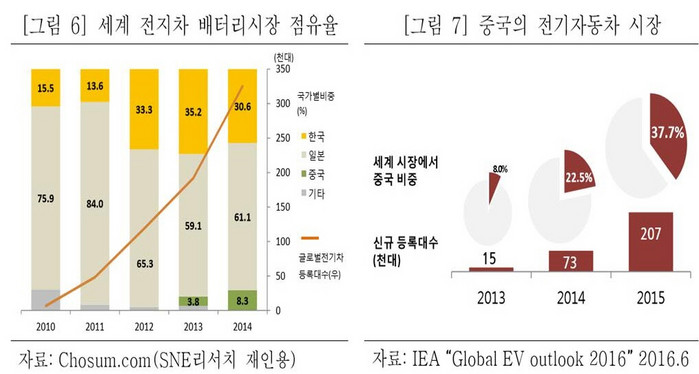 2016년 상반기 전기자동차 배터리 생산 10대 업체에 한국은 LG화학, 삼성SDI, SK이노베이션이 포함돼 있다.