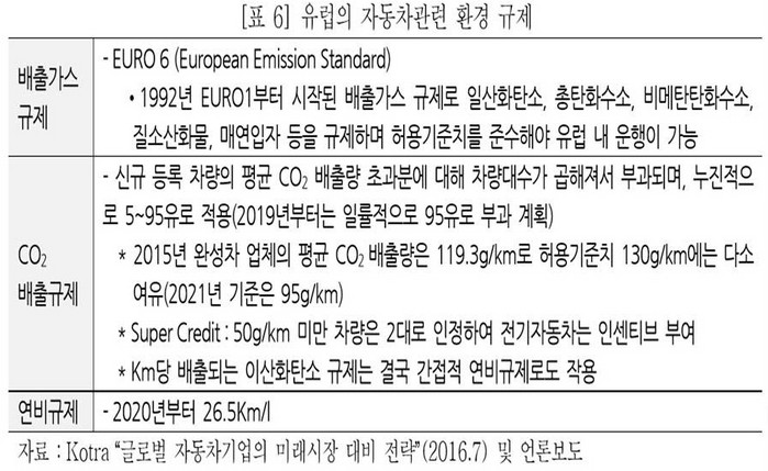 파리신기후체제로 강화되는 자동차 관련 환경규제가 전기자동차 시장이 조성되고 기술 개발이 촉진돼 연비규제, 이산화탄소 및 배기가스 배출규제, 판매쿼터 등이 빠르게 확산된 상태다.
