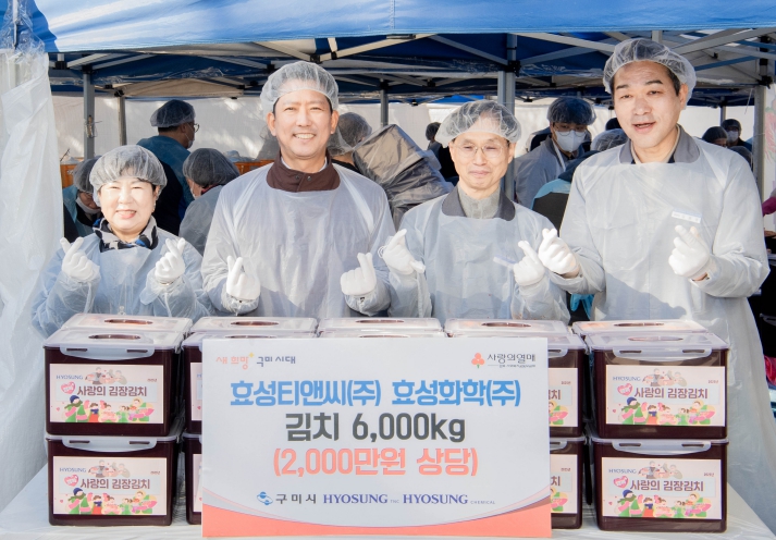 안준모 효성티앤씨(주) 구미공장장은 “임직원들이 직접 참여해 김장을 담그고 전달하니 나눔의 의미가 더욱 깊게 느껴진다”며 “정성껏 마련한 김치가 이웃들에게 작은 희망과 따뜻함이 되길 바란다”고 했다.
