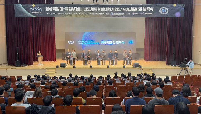 이날 업무협약식에는 경상국립대 이성갑 교학부총장과 국립부경대 김은경 교무처장을 비롯한 양 대학관계자가 참석했다. 이날 협약은 동남권 반도체 생태계 활성화와 우주·항공, 방산, 조선·해양산업 등 지역 주력 산업 고부가가치화의 기반이 될 반도체 패키징 및 테스트 분야 인력 양성을 위해 양 대학의 인적 자원과 기반시설을 공유하고, 반도체특성화대학사업단의 성공적인 운영을 위한 협력체계를 구축하기 위해 마련됐다.