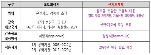 | ▲ 교토의정서와 신기후체제 비교분석 |