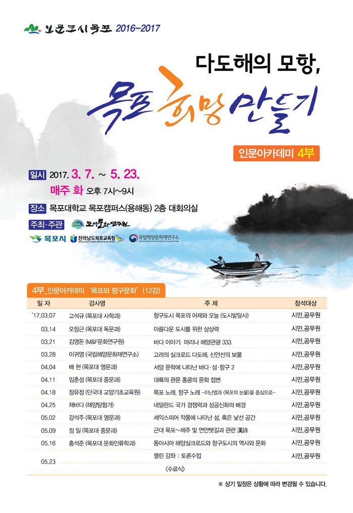 강좌 신청 : 목포대 도서문화연구원 061-260-1703, uni2107@naver.com