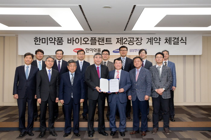 삼성엔지니어링(대표이사 사장 박중흠)은 한미약품과 평택 바이오플랜트 제2공장 신축공사에 대한 계약을 체결했다고 15일 밝혔다. 지난 14일 서울 송파구 한미약품 본사에서 진행된 계약식에 한미약품 이관순 사장과 삼성엔지니어링 박중흠 사장 등 양사 최고경영진이 참석했다.