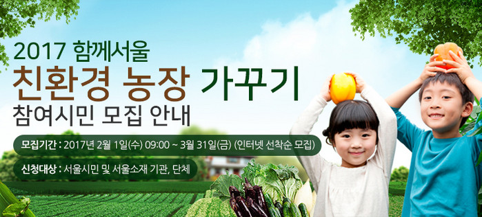 서울시는 서울 근교 지자체 손을 잡고 2017년도 희망친환경농장을 참여할 시민들을 찾는다.