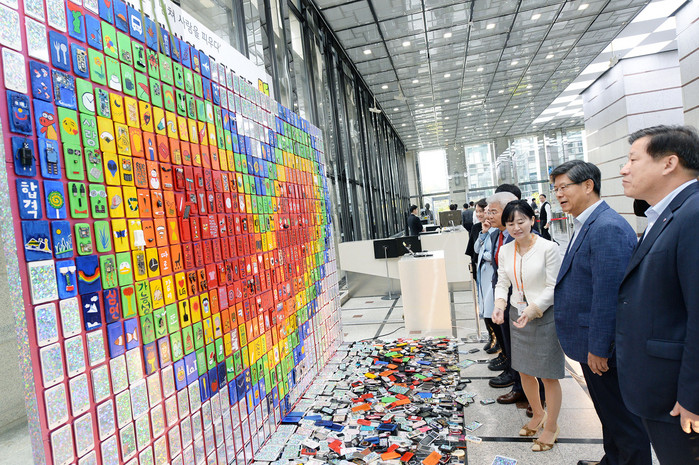 [화학신문 김영민 기자]LG전자가 임직원들의 사연이 담겨있는 폐휴대폰을 모아 예술작품으로 재탄생시켰다.