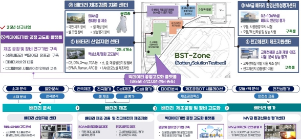 빅데이터 기반 상용배터리 공정고도화 플랫폼은 소재 개발-제조-분석 및 평가를 위한 전주기 인프라가 집적된 BST-ZONE내에 구축된다.