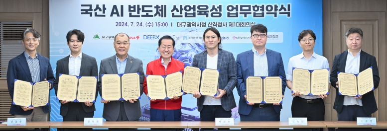 이에 대구시는 국내 AI반도체 시장을 선도하고 있는 퓨리오사AI, 딥엑스, 모빌린트 등 팹리스 기업들과 국산 AI반도체 실증에서부터 반도체 S/W 개발, 반도체 S/W 센터 구축, 인력양성에 이르는 전방위 협력체계 구축에 선제적으로 나선다.