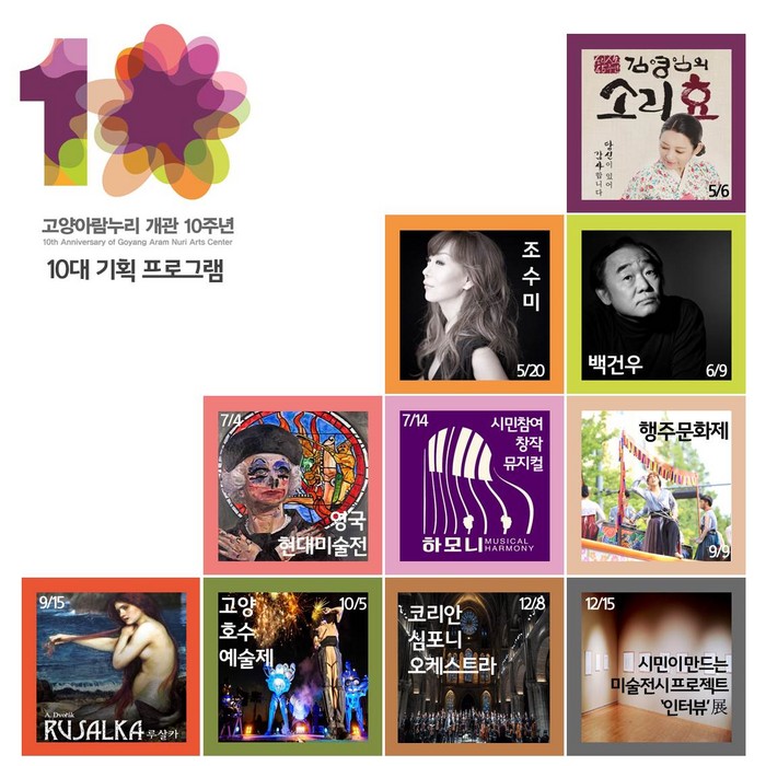 [화학신문 김영민 기자]고양문화재단(대표이사 박진)은 2017년 고양아람누리 개관 10주년을 기념해 최고의 아티스트와 콘텐츠를 갖춘 10대 기획을 진행한다고 밝혔다.