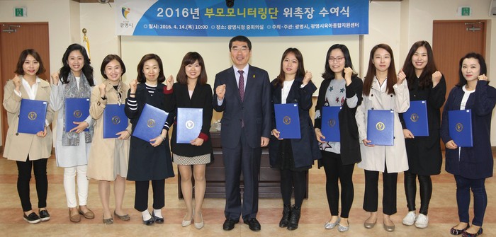[화학신문 이은수 기자] 광명시(시장 양기대)는 14일 수요자 중심의 보육정책 실현을 위해 2016년 어린이집 부모 모니터링단 위촉장 수여식을 가졌다.
