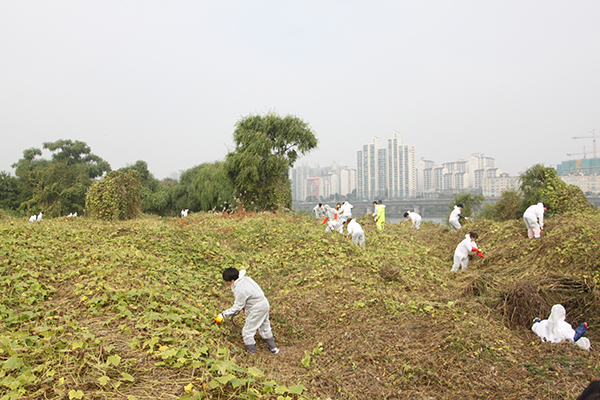생태계 교란 식물의 확산은 토종식물의 생육저하와 고사로 연결돼 고유의 자연 생태계를 교란하고 생물 다양성을 감소시키는 등 자연환경에 심각한 영향을 초래하고 있다. 때문에 건전한 생태계 유지를 위해 한강 변 생태계 교란 식물의 관리의 필요성이 조명됐으며, 철새도래지이자 생태계 보전지역인 밤섬 람사르 습지와 샛강 생태공원의 정화활동이 수행됐다.