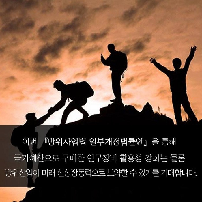 이번 개정안의 핵심은 무기체계의 연구개발에 필요한 핵심기술의 연구개발을 수행하기 위해 필요하다고 인정할 때 방산업체, 일반연구기관 등에 시험평가 시설, 설비, 정보 등을 지원할 수 있는 법적 근거를 담았다.