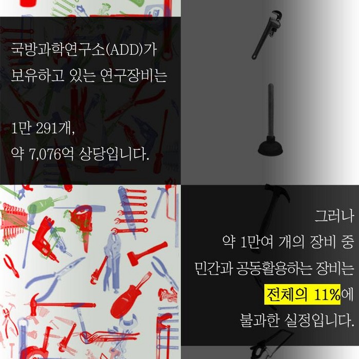 그러나 지금까지 이들 장비 중 민간과 공동 활용하고 있는 장비는 불과 1155개로 11.2%에 불과했다.