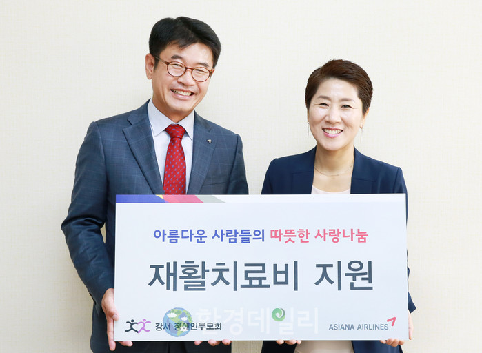 [화학신문 최인배 기자]아시아나항공(사장 김수천)이 2016 사랑나누기 캠페인을 통해 조성된 임직원들의 성금을 강서구 내 장애인 단체에 전달했다.