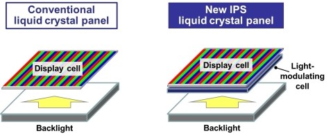 파나소닉의 새로운 IPS 액정 패널 특징은 ▲업계 최초로 종래의 제품보다 600배 높은 1,000,000:1이 넘는 고 명암비 ▲최대 1,000 cd/m2 휘도에서도 안정적으로 작동 ▲기존의 액정 패널 제조시설을 이용해 생산 가능을 자랑한다.