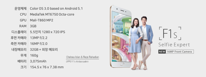 | ▲베트남인들이 삼성제품보다 OPPO F1를 더 선호하는데 가격대비 가성비를 눈을 떠 있는 것으로 나타나고 있다. OPPO F1 제품 이미지 및 규격 |