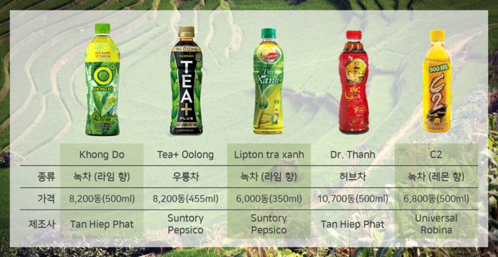 Euromonitor(유로모니터)에 따르면, 2015년 베트남 전체 음료시장 규모는 48조995억 동(약 2조4050억 원)으로 최근 5년 사이 약 2배 성장, 2015년 전체 음료시장 중 '차 음료'부문의 성장이 가장 주목할 만하다고 보고된 바 있다.
