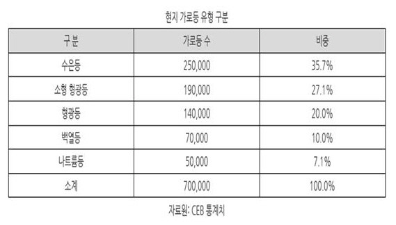 [화학신문 윤동혁 기자]스리랑카의 가로등은 약 70만 개로 추정되며, 전체 에너지 소비 중 약 1.1%를 차지하고 있는데 수은등, 형광등이 차지하는 비중이 높아 전력 효율성이 낮은 편이다.