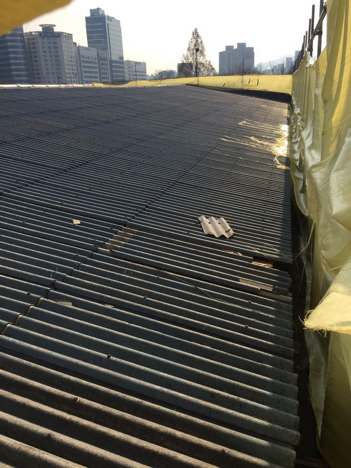 [화학신문 김영민 기자]잠실 제2수영장 체조관에 1급 발암물질 석면이 든 폐슬레이트, 밤라이트 해체철거를 한나절만에 감쪽같이 처리했다.