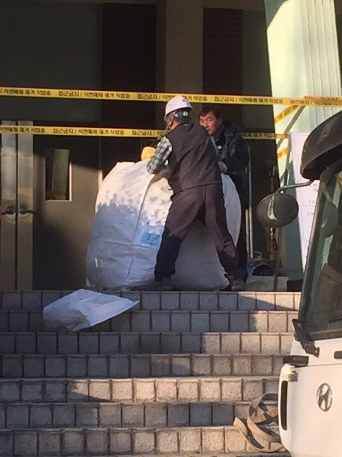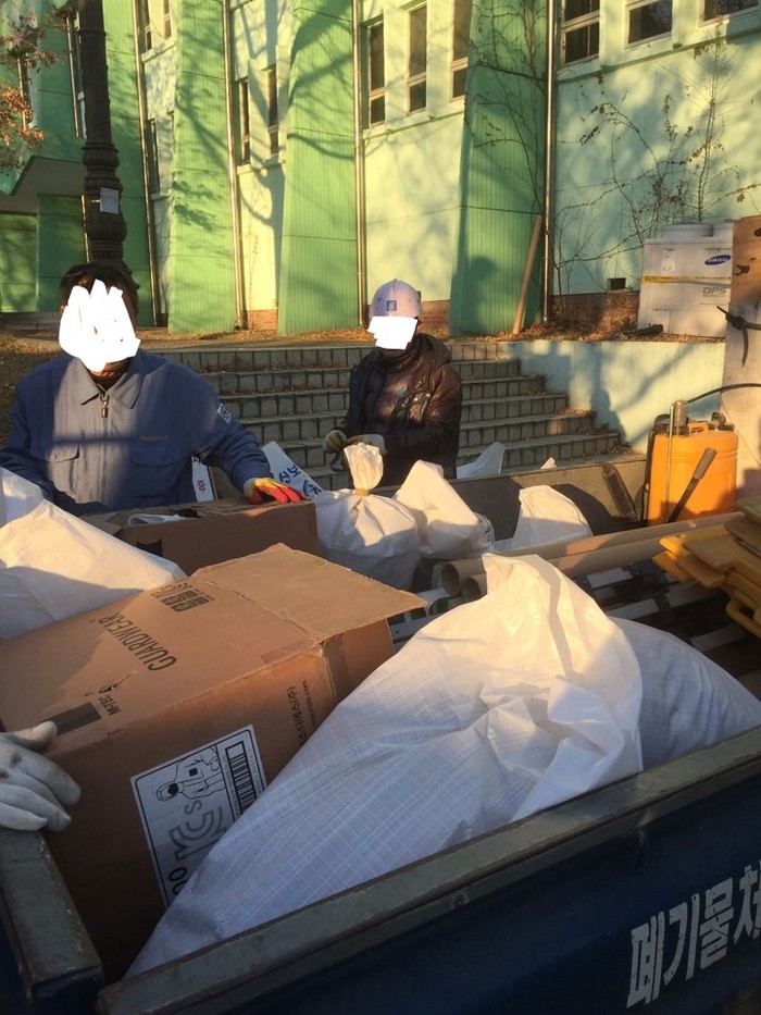 석면안전관리법에는 작업장 내부에 쓰던 모든 도구나 기타 물건은 철저하게 분리해 폐기하고 별도로 지정폐기물로 배출하도록 돼 있다. 이러나 이런 작업도구인 마스크 등은 자루에 담아 다시 가져갔다.