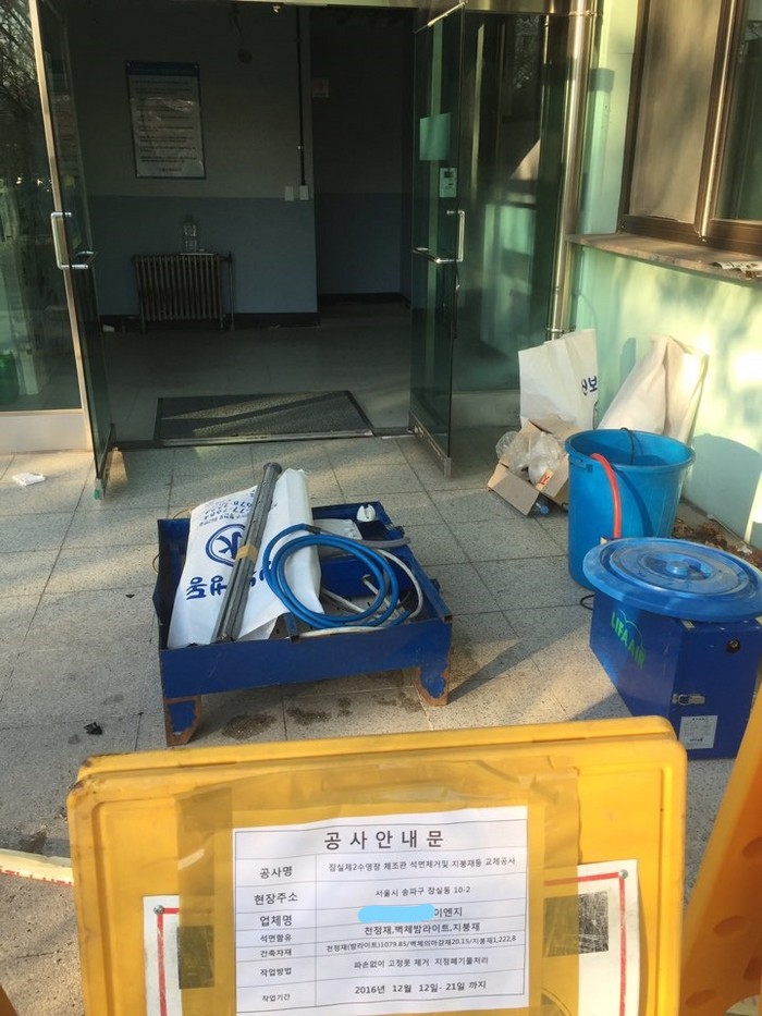 작업 안내문에서 9일간 석면해체철거한다고 명시해놓고 하루만에 처리하는 엄청난 일사천리로 뜯어냈다. 특히 샤위부스는 제대로 작동이 되는지 의심스러울 정도로 쓴 지 오래된 흔적이 육안으로 나타났다.