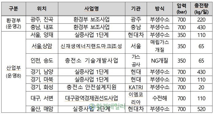 수소충전소는 2014년 광주시 진곡에 환경부 보급사업으로 최초의 수소차 충전소가 구축된 이후 이번에 준공되는 창원충전소처럼 점차 확대되고 있다.