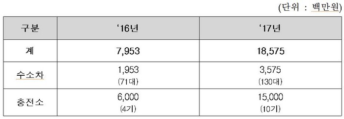 환경부는 2013년부터 수소차 및 수소충전소 보급사업을 추진해 올해까지 누적으로 전국에 수소차 310대 보급, 수소차 충전소 16곳을 확충할 계획이다. 지난해까지 수소차 121대, 수소차 충전소 6곳을 확충했다.