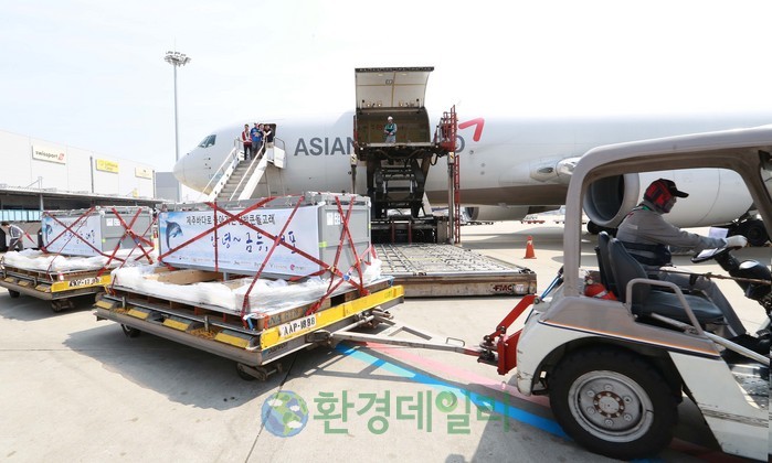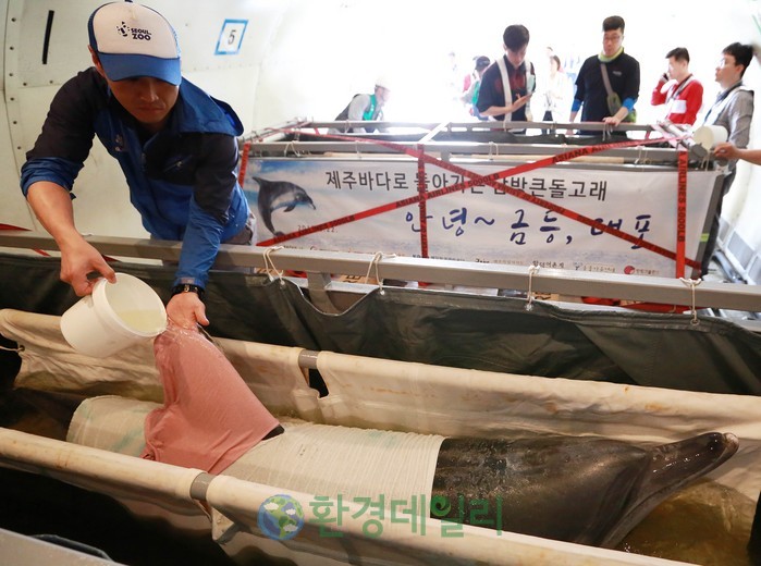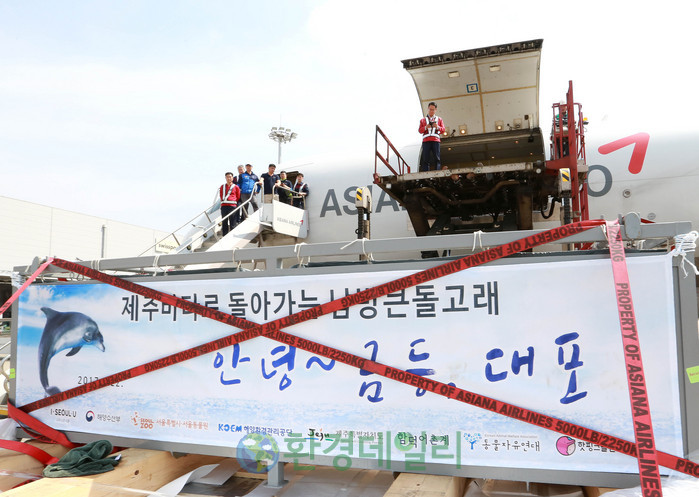 [화학신문 한영익 기자]아시아나항공은 5월 22일(월) 오전 10시 30분 화물 전세기편으로 돌고래 두 마리(금등, 대포)를 인천에서 제주로 무사히 수송했다.