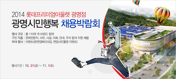 10월 31일 부터 11월 1일까지 광명시민체육관에서 롯데프리미엄아울렛 광명점에 근무할 직원을 뽑는다.