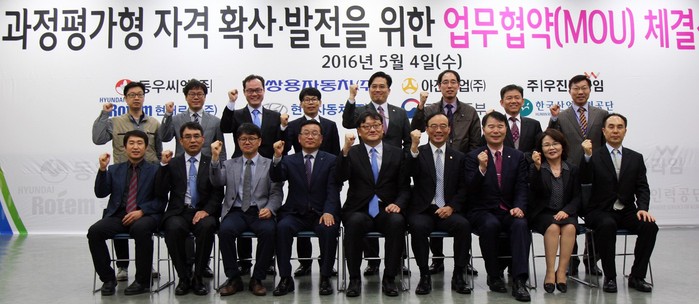 지난 4일 쌍용차 대전연수원에서 열린 과정평가형 자격 확산발전을 위한 업무협약식(MOU)에는 노동부 권기섭 직업능력정책국장, 한국산업인력공단 김시태 능력평가 이사와 쌍용차 마케팅본부장 신영식 전무를 포함해 교육훈련기관에 선정된 6개 기업 관계자 등 20여명이 참석했다.