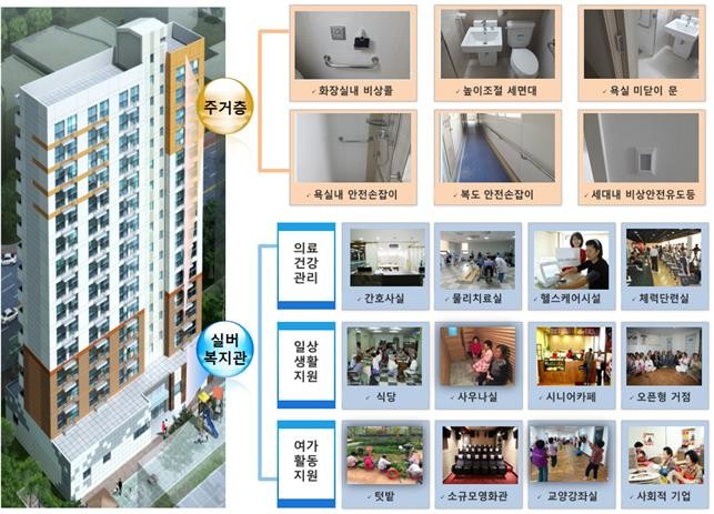 공공실버주택은 공동주택의 저층부에는 복지관을 설치하고 상층부에는 고령자 맞춤형 주택을 건설해 주거와 복지 서비스를 함께 제공하는 공공임대주택을 말한다.