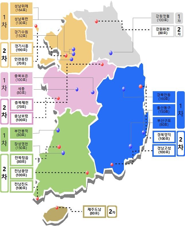 이번 2차 사업지 선정을 위해 지자체로부터 지난해 9월에 사업후보지 제안을 받았으며 제안서 검토·평가 및 현장실사 등을 거쳐 인천 옹진, 충북 제천, 전남 광양, 경북 영덕 등 11곳에 1070호을 선정했다.