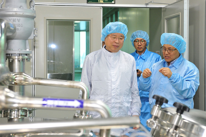 | ▲LG화학 박진수 부회장(좌측 첫번째) 이 1월 5일 새해 첫 현장경영으로 전북도 익산시에 위치한 생명과학사업본부 바이오의약품 공장을 방문해 생산시설을 둘러보는 모습 |