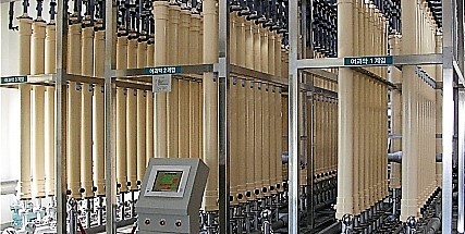 ▲막여과 시설, 막여과 방식은 미세한 필터인 분리막을 통해 오염물질을 걸러내는 최첨단 기술로, 수돗물이 머리카락의 1000분의 1 굵기의 구멍을 통과하도록 해 세균 류, 원생동물 등 수돗물의 오염물질을 99.9999%까지 제거한다. |
