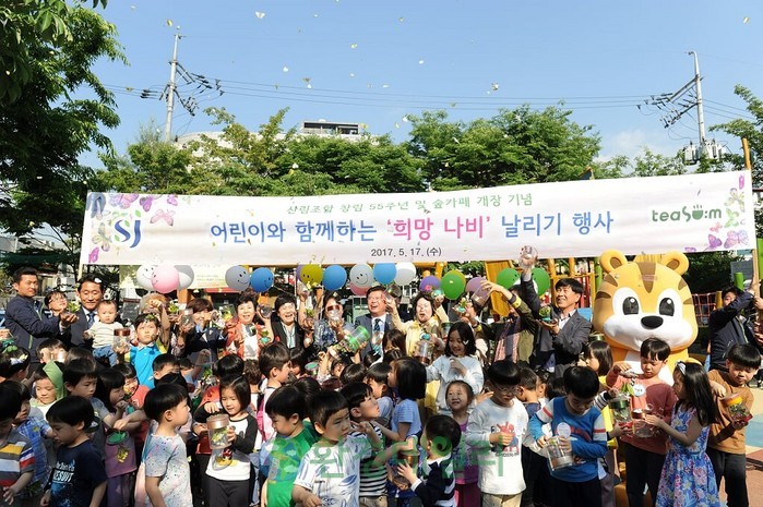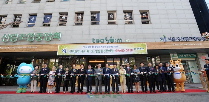 개장행사에는 산림조합 창립55주년 축하하고 티숨(teasu:m)의 성공을 기원하는 산림조합의 마음을 담아 도심에서 숲을 체험 할 수 있도록 산림조합이 조성한 서울 송파구 삼학사 어린이 공원에서 송파지역 어린이 55명과 함께 '희망의 나비' 1000여마리를 날려 보냈으며 중앙회 11층에 조성한 숲속 동물 공원인 하늘 숲 테마파크도 함께 개장하였다.