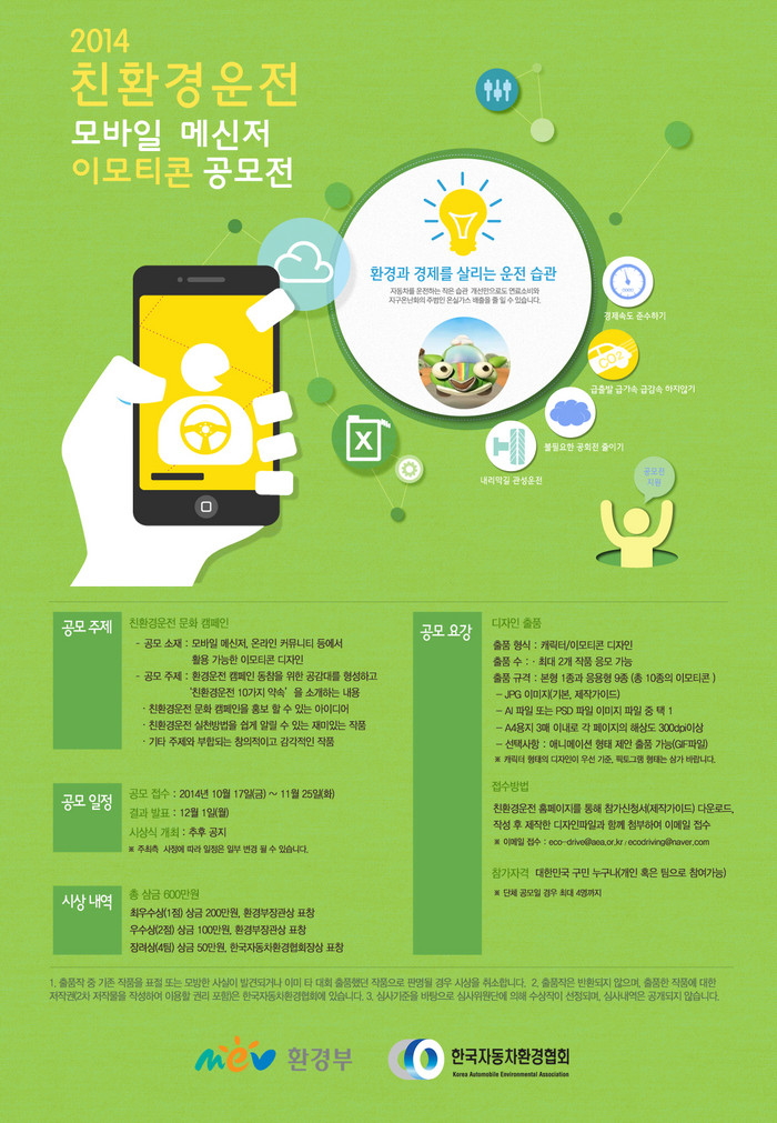 이번 공모전은 친환경운전 문화 확산 캠페인의 일환으로 독창적이고 친숙한 이모티콘 디자인 공모를 통해 국민들의 관심을 높이기 위해 기획됐다.