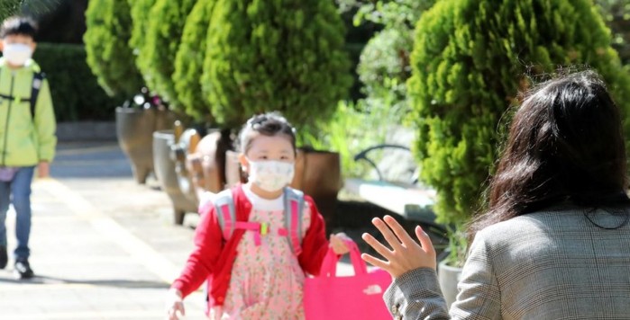 | ▲등교하지 못한 아이들은 장시간 동안 집에 머물게 되면서 오히려 불규칙한 식습관 등으로 비만 등 질병이 증가했다. 사진 등굣길에 선생님이 아이들 반기고 있다. 제공 학생건강정보센터 |