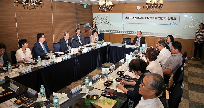 [화학신문 이수진 기자]18일 오후, 박홍섭 마포구청장이 구청 대회의실 및 대화의 방에서 열린 '동 지역사회보장협의체 연합회 임원선출 및 간담회'에 참석해 16명의 동 지역사회보장협의체 민간위원장과 관계자들에게 현안을 논의했다.