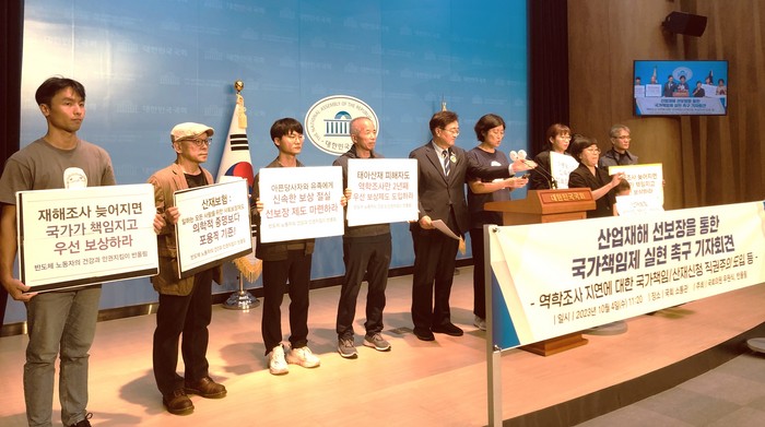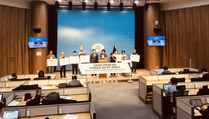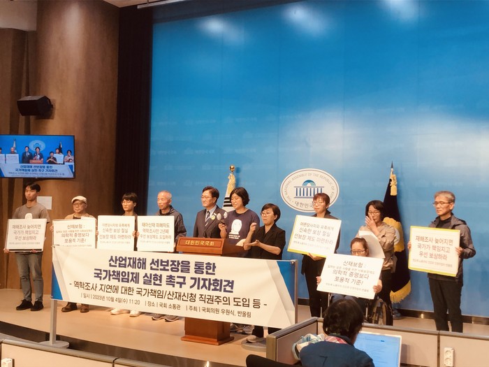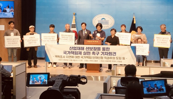 또 "노동부와 근로복지공단, 안전보건공단 등 관련 기관은 법제도의 미비를 핑계 삼고 복지부동의 성벽이 돼 아픈 노동자들의 인권과 권리를 박탈하고 있다."라며 "피해자 단체와 국회가 나서 직무유기의 카르텔을 혁파할 때"라고 읍소했다.