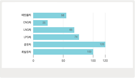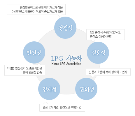 자동차 연료비를 비교해보면, LPG 694,53원, 경유 1205.14원, 휘발유 1410.92원이다.(10월 둘째 주 기준) 친환경적측면과 연료비 부담에서 월등하게 액화석유가스(LPG)가 자동차 연료로 가장 적합한 상황이다.