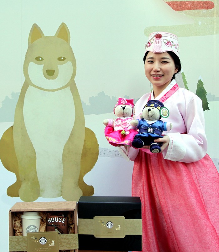 스타벅스는 설 명절과 졸업 등 기념할 일이 많은 시기적 특성을 고려, 고객이 원하는 머그 및 텀블러, 원두 등의 상품을 골라 구매하면 황금 진돗개가 그려진 골드 색상 띠지로 선물 박스를 꾸며주는 포장 서비스를 2월 19일까지 제공한다.